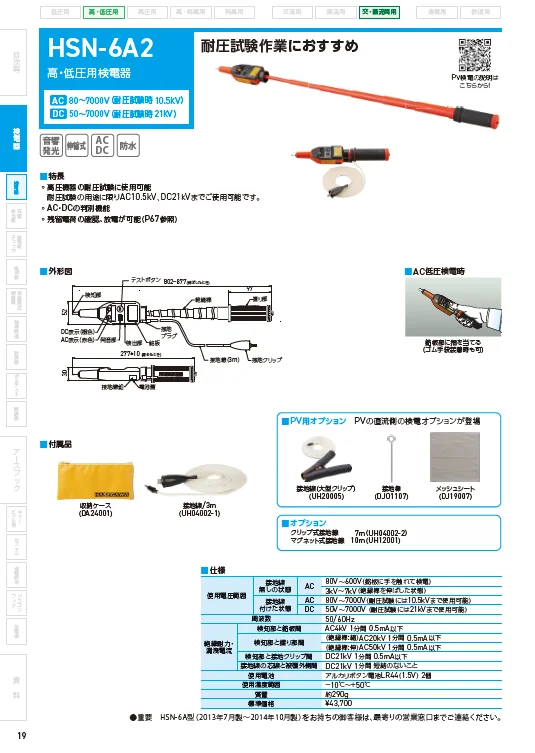 HSN-6A2 長谷川電機工業 高・低圧用検電器 音響発光 伸縮式 防滴 AC/DC HASEGAWA