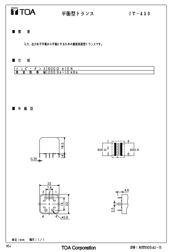 IT-450 TOA 平衡型トランス 基板実装型 【全国一律送料450円】