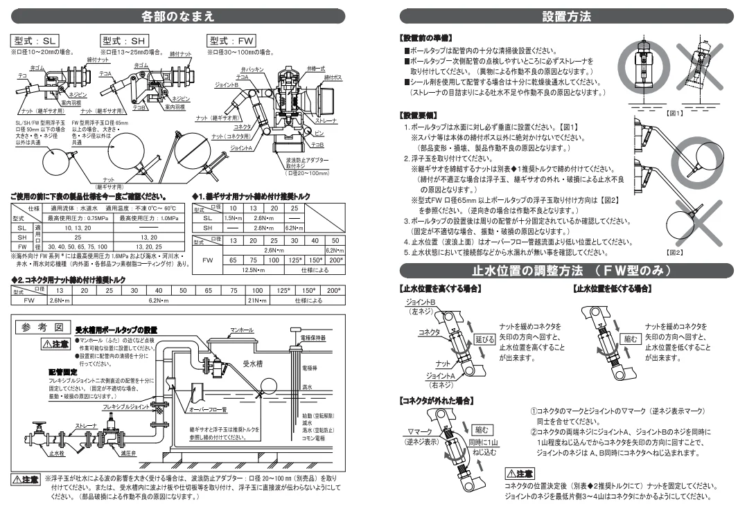機器タンク内の水位を一定水位に保つ際に使用し、給湯器、太陽熱温水器、受水槽、クーリングタワー、消火水槽等に使用されます
