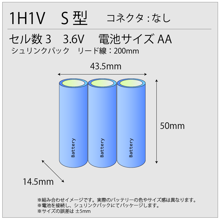 【コネクタなしリード線のみ】KR0.6AA-3 (KR06AA3) 相当品 3.6V600mAh(3.6V700mAh) 電池屋組電池 【DK3AA07SC】