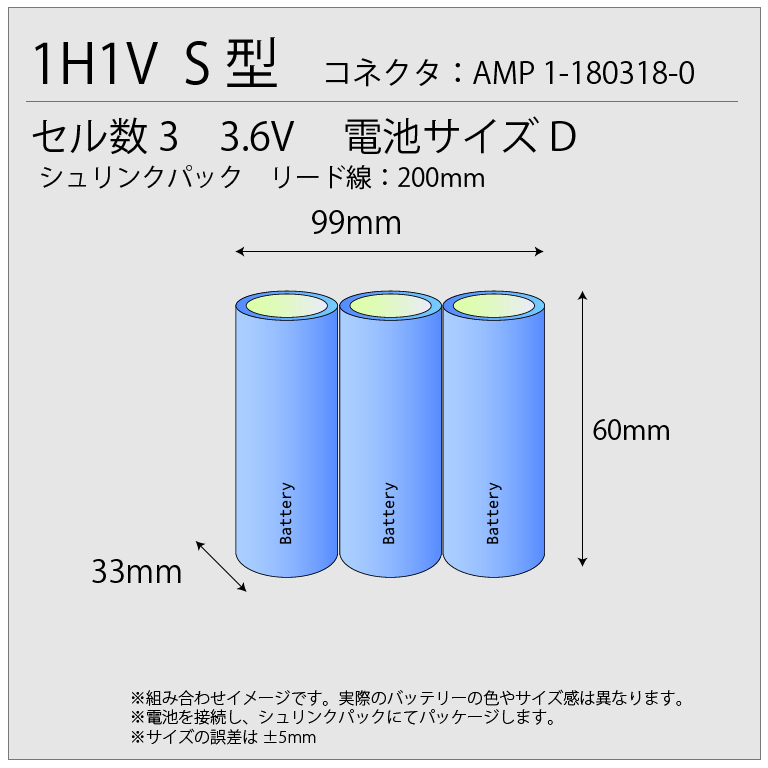 サイズ表記の無い組電池のサイズは使用するセルの種類によって異なります。ご注文後、当社で作成する組電池のサイズをご連絡いたしますので、ご確認をお願いいたします。