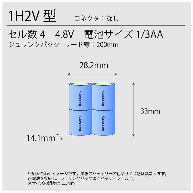 4.8V90mAh 1H2V型 組電池製作バッテリー リード線のみ D415-1H2V-13AA-CX