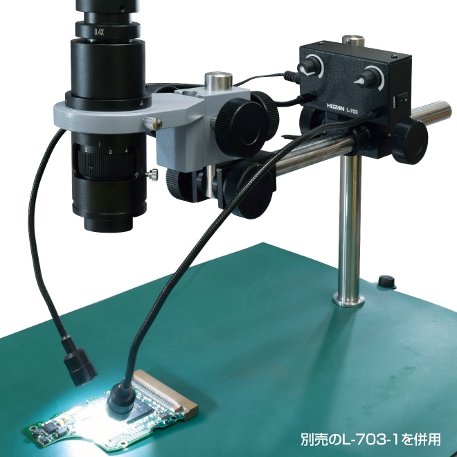 目視から顕微鏡まで様々な観察に使用できる自立型フレキシブルアームのスポット照明