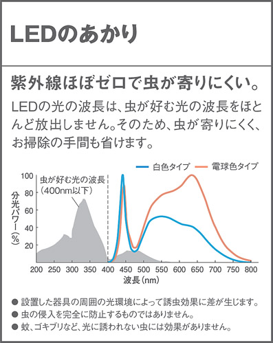 - LED(電球色タイプ) 色温度:2700 K 光束維持時間40000時間(光束維持率70%)
