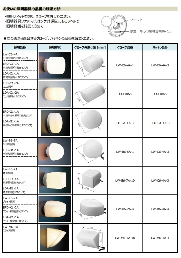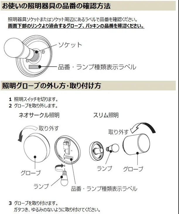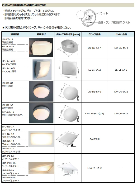 ※照明適合品番を必ずご確認ください。