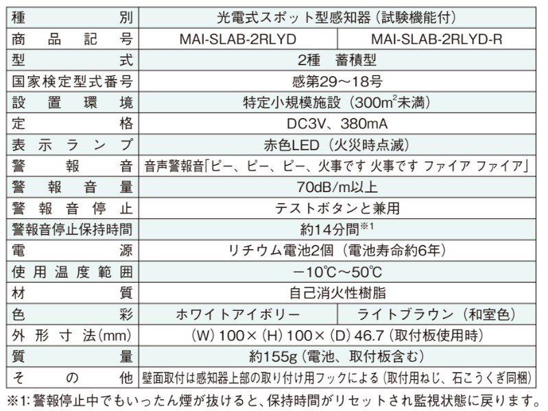 - 種別: 光電式スポット型煙感知器