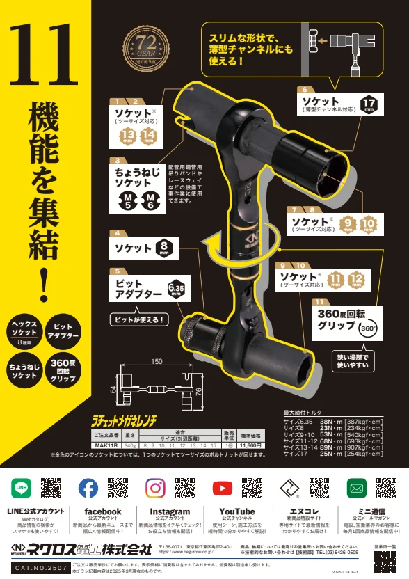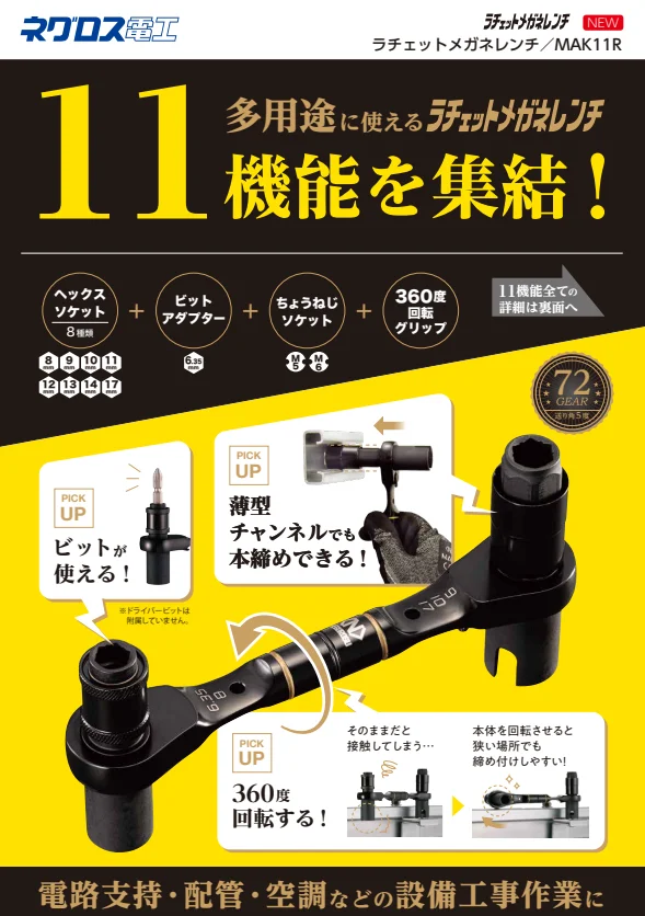 MAK11R ネグロス 純正部品 ラチェットメガネレンチ 11機能を集結