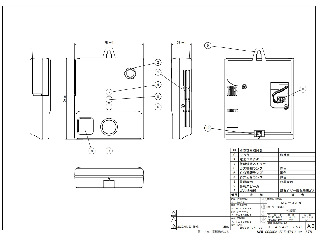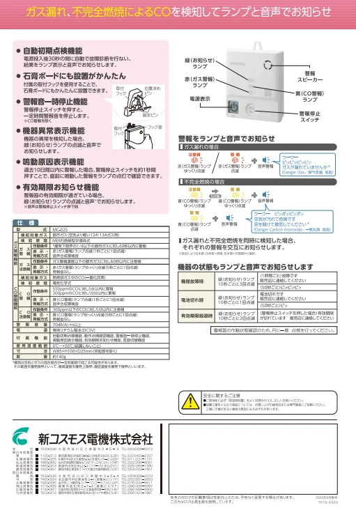 MC-325 新コスモス電機 住宅用火災(煙式)・ガス・CO警報器 電池式