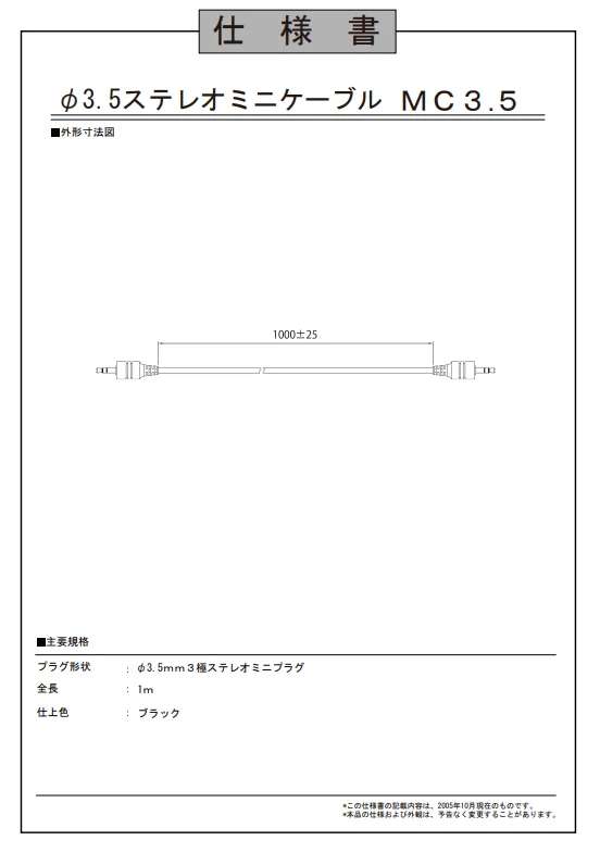 - 形状: 3極ステレオミニプラグ