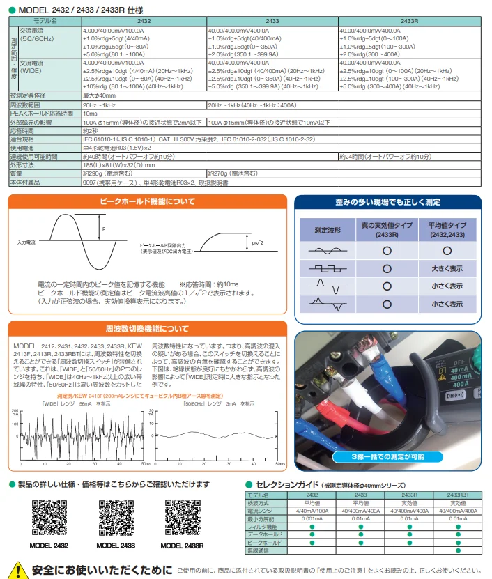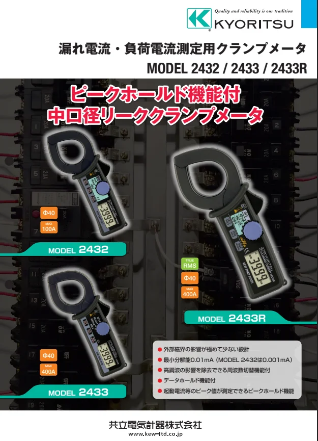 漏れ電流・負荷電流測定用クランプメータキュースナップMODEL2433