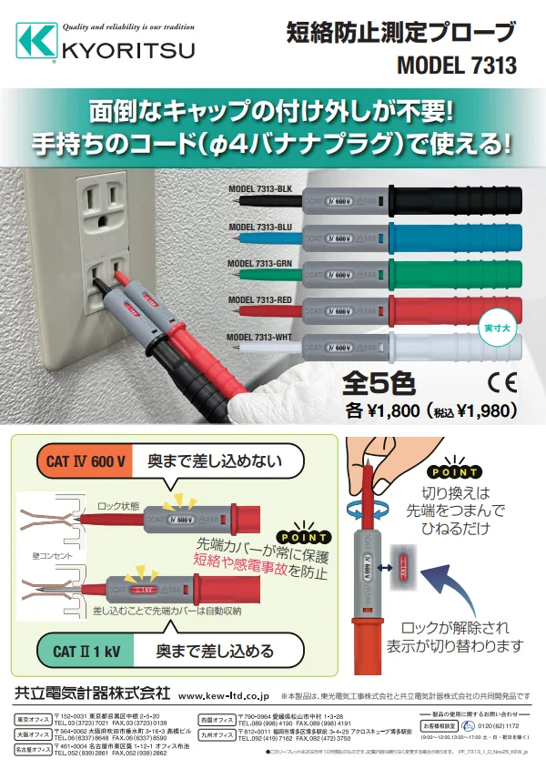 MODEL 7313-BLK 共立電気計器 短絡防止測定プローブ カラ...