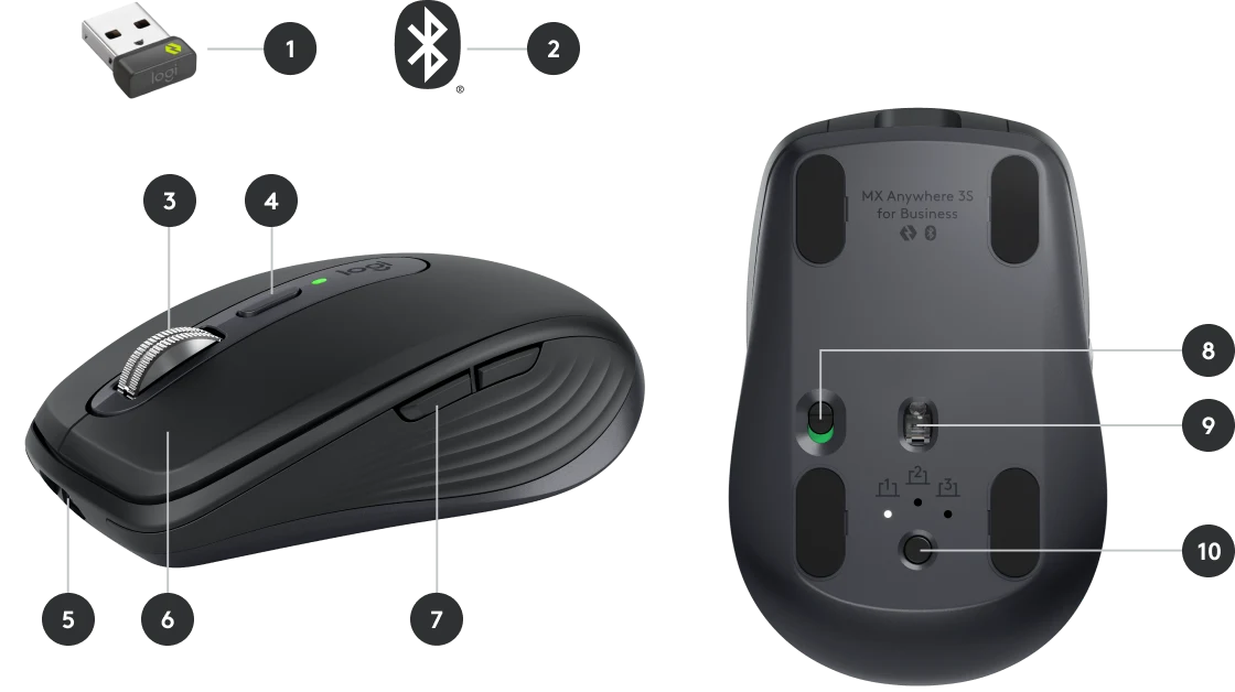 マウスはパッケージから出してすぐにLogi Bolt USBレシーバーにペアリングされており、セットアップが簡単です。 高性能でセキュアなLogi Boltによる接続、または柔軟な接続性を提供する Bluetooth®LowEnergyによる接続。
