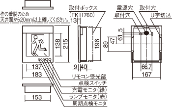 - 注)24時間充電してからお使いください。設置後は通電し、蓄電池を充電しないと非常点灯しません。