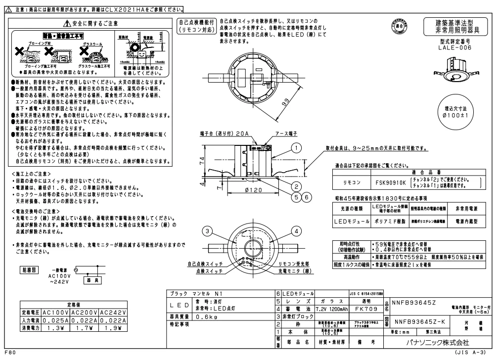 - 種別: LED非常用照明器具