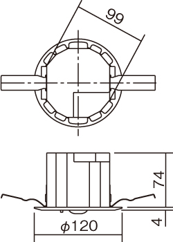 - 埋込穴径:φ100 mm 埋込高:74 mm