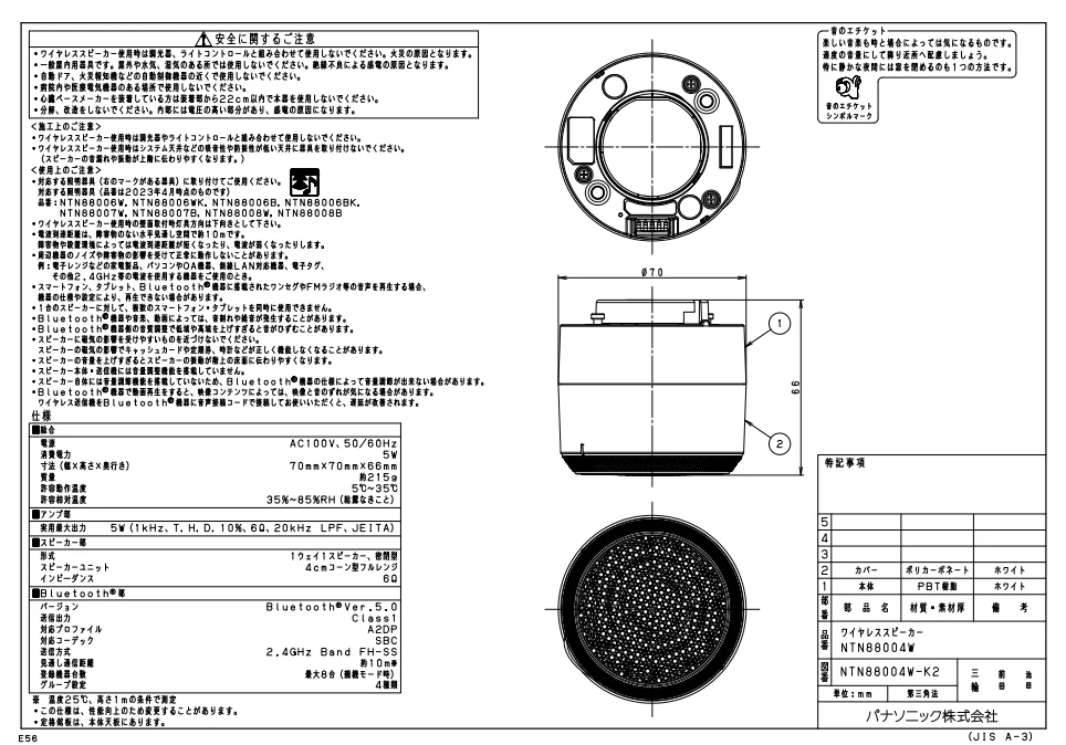 - 無線:対応コーデック:SBC