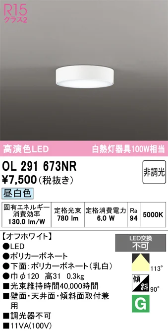 OL 291 673NR 昼白色 オフホワイト オーデリック LEDシーリングライト 白熱灯器具100W相当 非調光 【全国一律送料450円】