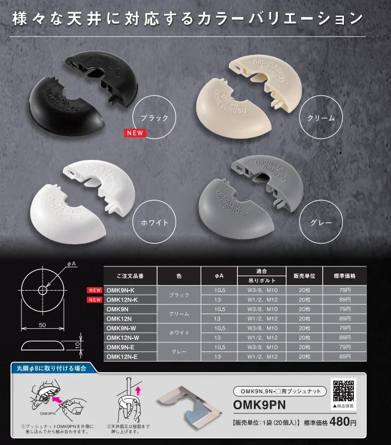 OMK9N-K 20枚セット ブラック ネグロス 純正部品 Φ10.5 吊りボルト用貫通穴化粧カバー おめかしキャップ