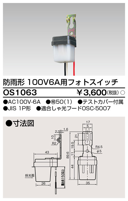 【2026年2月11日時点で納期未定】OS1063 東芝ライテック フォトスイッチ ( EEスイッチ ) 防雨形 100V3A用フォトスイッチ OS-1063