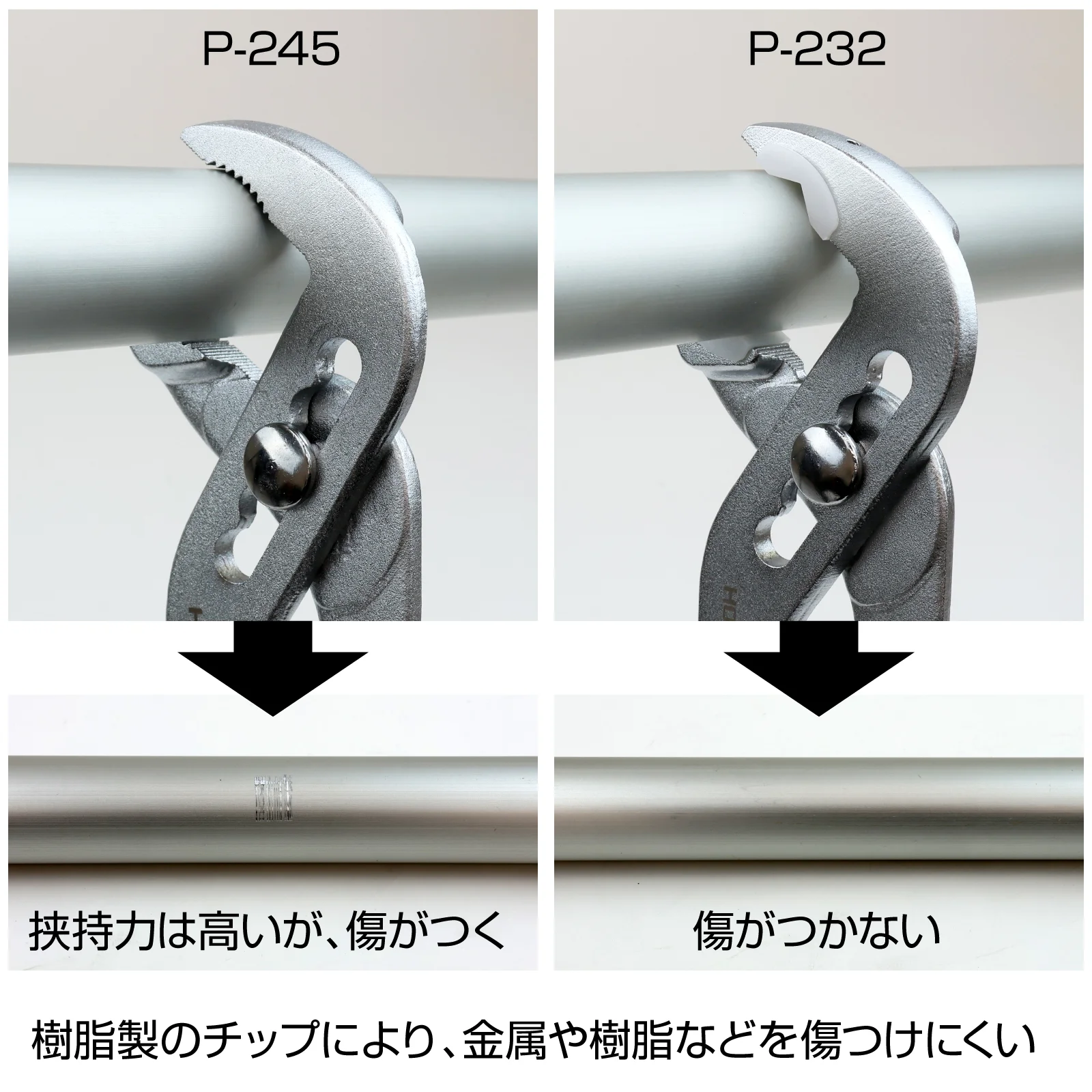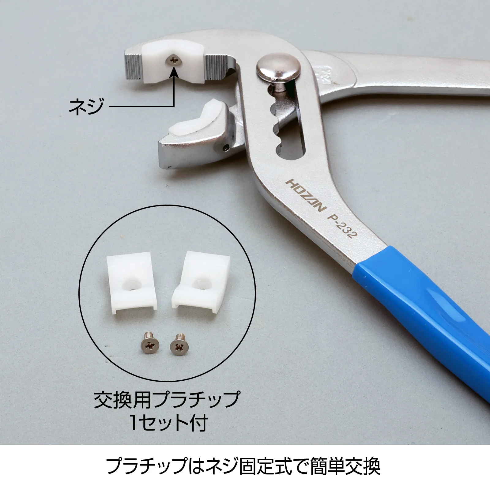 - 対象物に傷をつけにくいプラチップ付ウォーターポンププライヤー