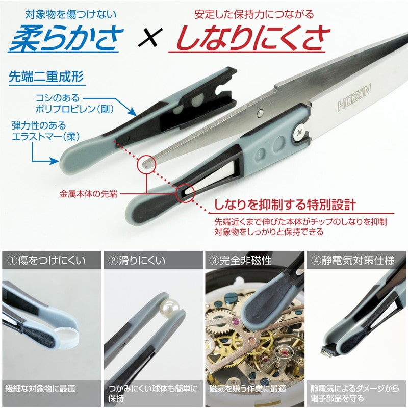 P-645-J ホーザン 新品 ESDソフトチップピンセット HOZAN