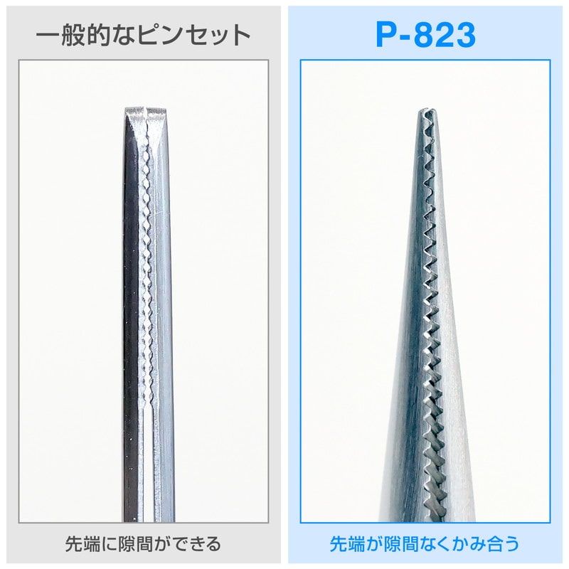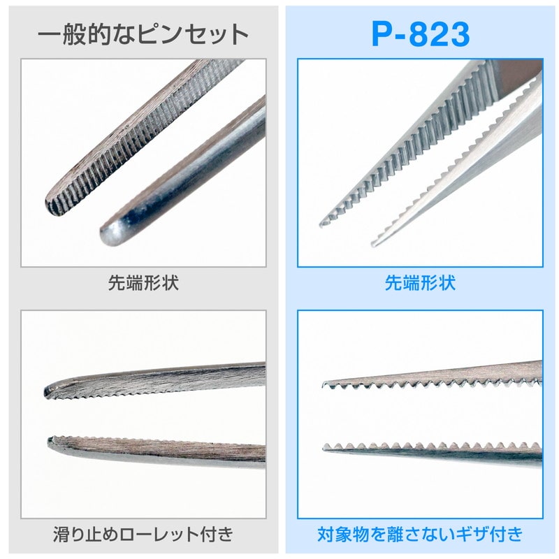 先端のギザが噛み合うピンセット