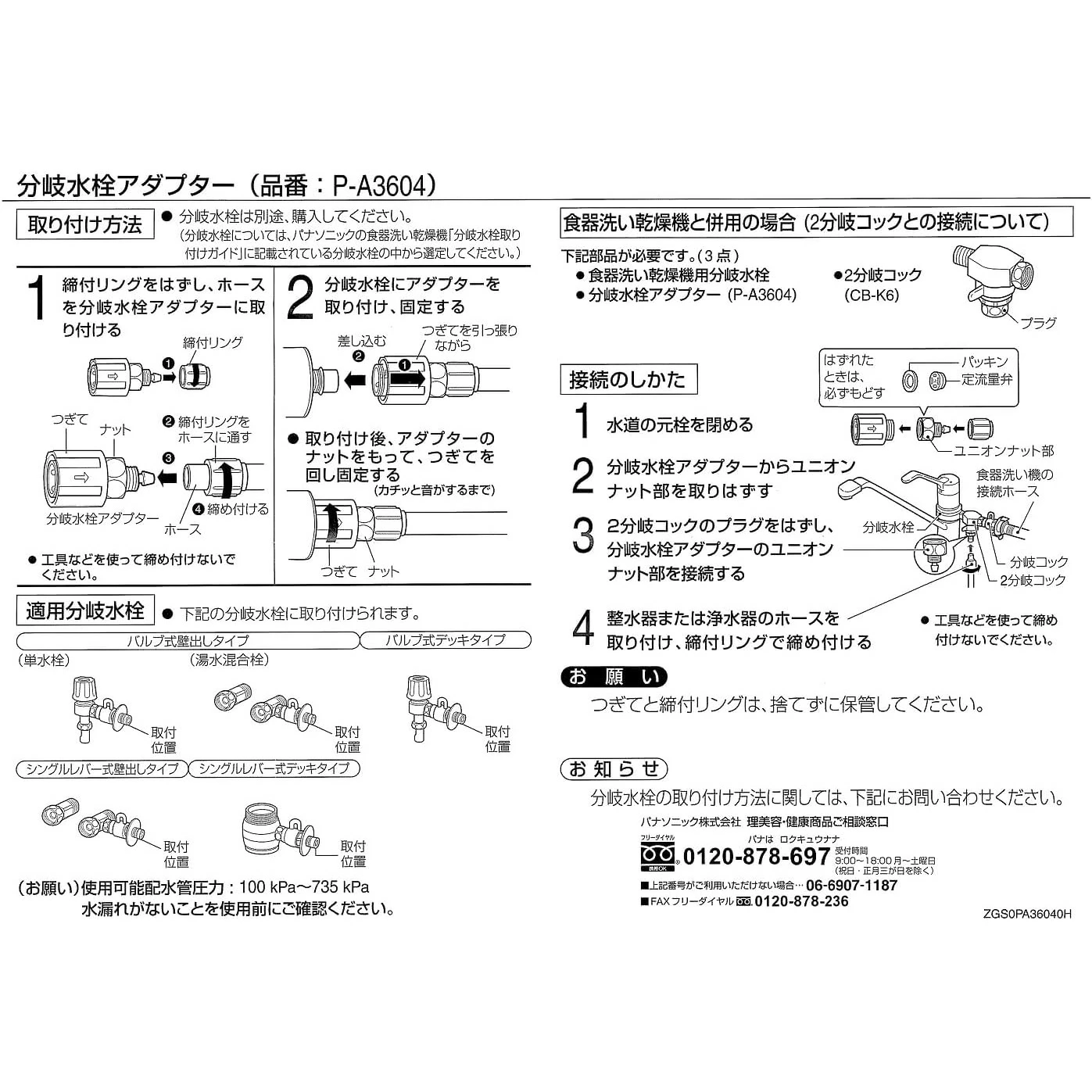 P-A3604 パナソニック 純正部品 分岐水栓アダプター アルカリ浄水器・整水器用 Panasonic