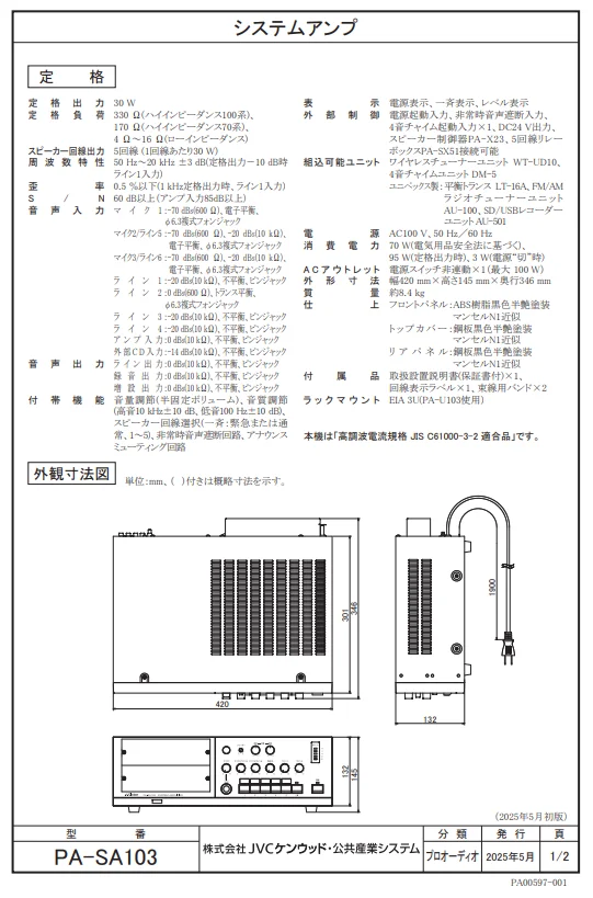 PA-SA103 JVCケンウッド システムアンプ (30W)