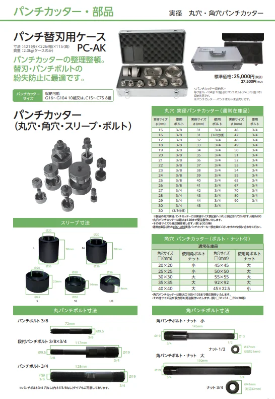 - 種別: ノックアウトパンチ用パンチカッター