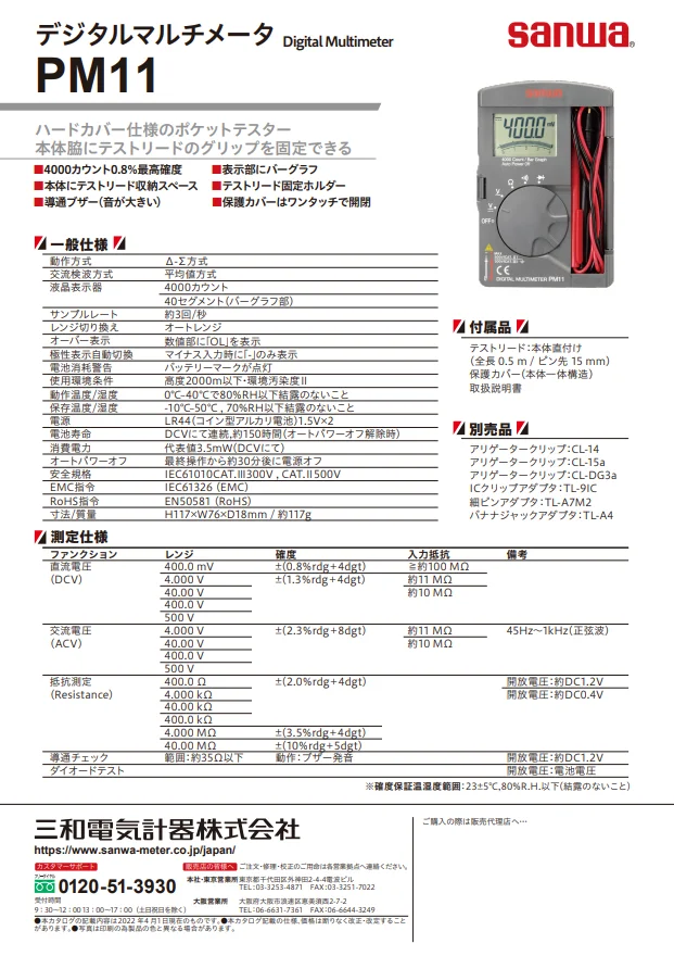 PM11 デジタルマルチメータ/ポケットタイプ 三和電気計器