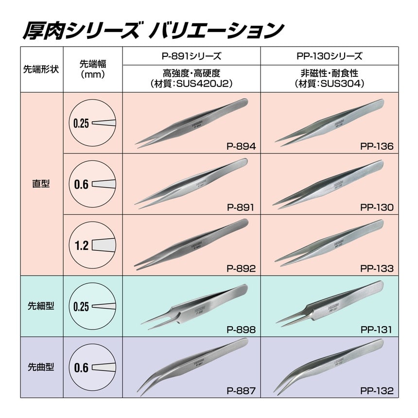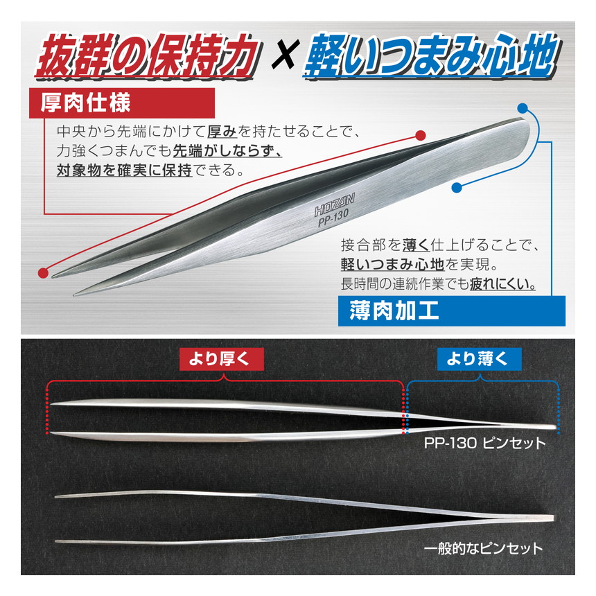 滑らかな手触りと、先端精度にこだわった強力型ピンセット。