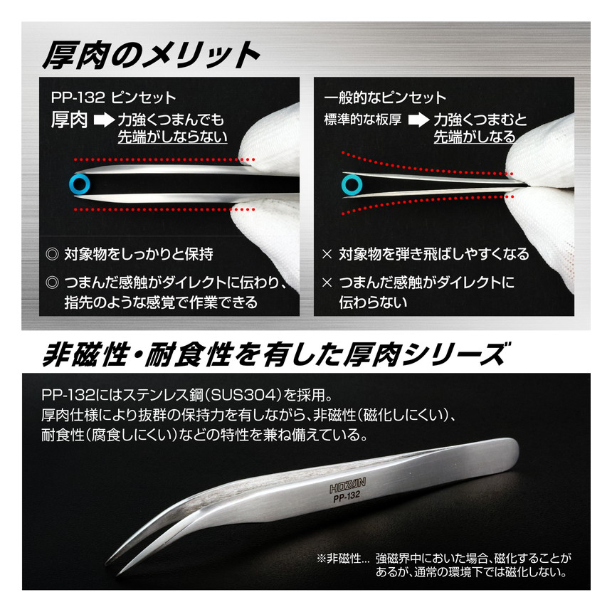 滑らかな手触りと、先端精度にこだわった強力型ピンセット。