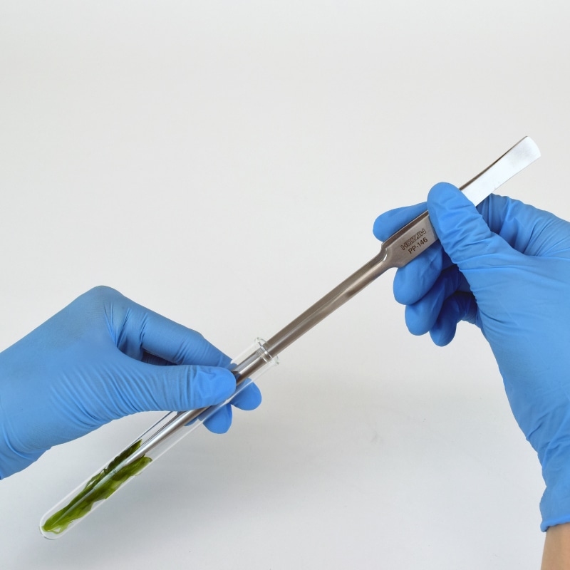 試験管などの細長い容器に入った試料も正確につかむことができます。