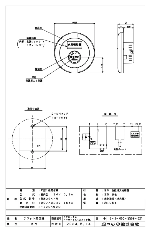 - 種別: P型1級フラット型表示灯発信機