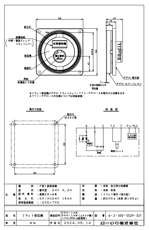 - 種別: P型1級フラット型表示灯発信機