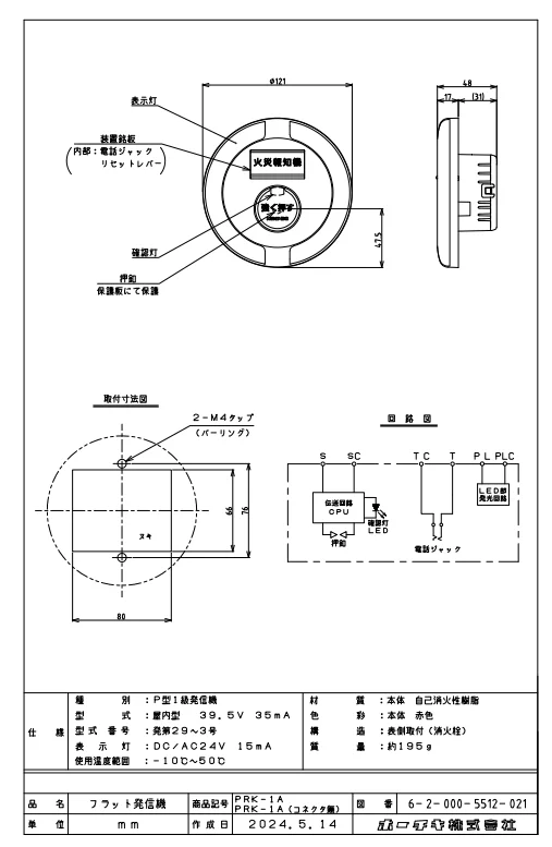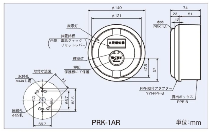 PRK-1AR ホーチキ P型1級フラット型表示灯発信機 露出型 アドレッサブル機能付(セット型番)