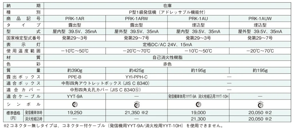 - 品名: 発信機PRK-1A + ケーブルYYT-9A + アダプタYYI-PPH-B + 露出ボックスPPE-B