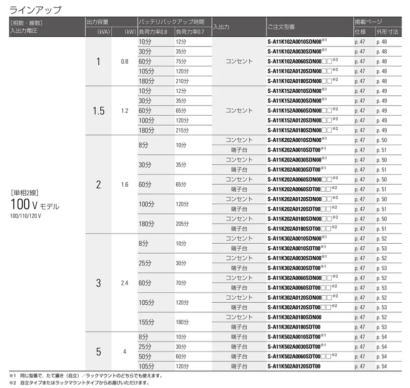 - 品名: SANUPS A11Kシリーズ 100Vモデル単相2線