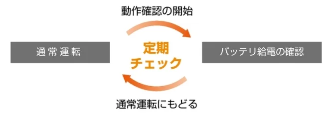 定期的に自動でバッテリ動作テストを行い、停電時に確実に動作する状態を保ちます。