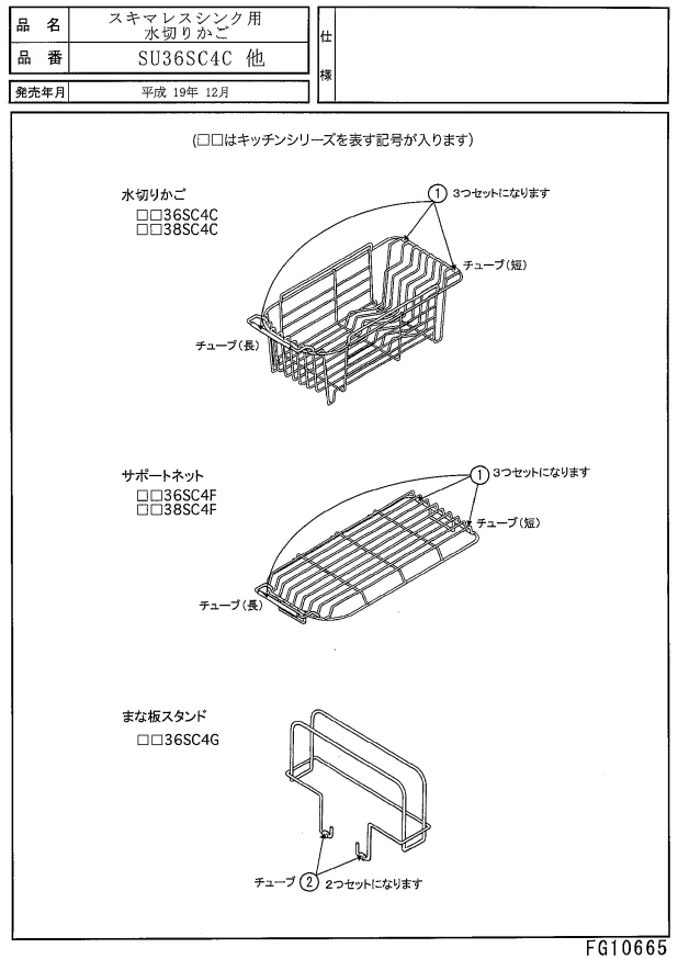 SE36SC4C01K パナソニック 純正部品 かご・ネット用チューブ 5本セット キッチン部品 Panasonic