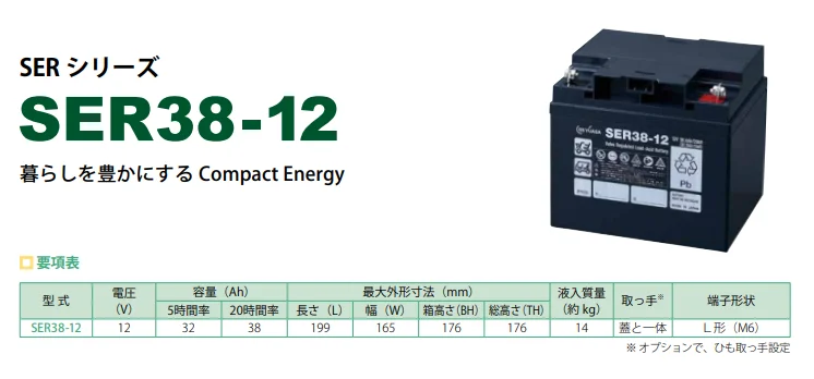 SER38-12 【2台セット】 GSユアサ製 新品 12V38Ah/20h 小型電動車用制御弁式鉛蓄電池 SERシリーズ