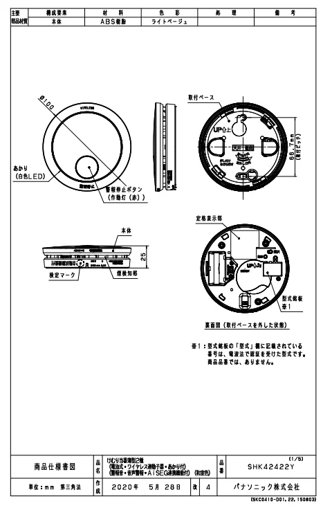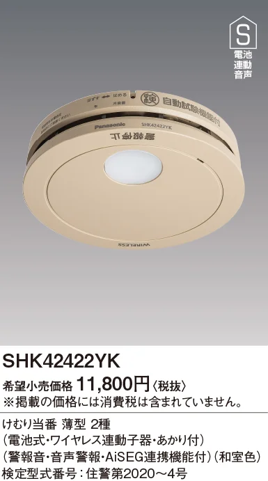 SHK42422YK 和室色 パナソニック けむり当番 薄型 2種 ワイヤレス連動 子器 電池式 あかり付 警報音 音声警報 AISEG連携機能付