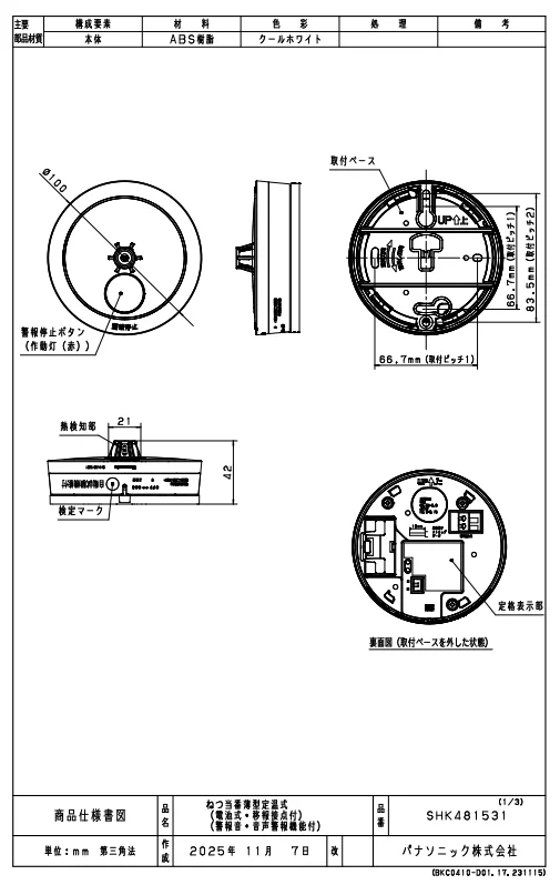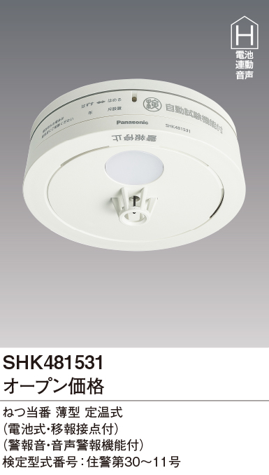 SHK481531 パナソニック ねつ当番 薄型 定温式 電池式 移報接点あり あかりなし(警報音・音声警報機能)