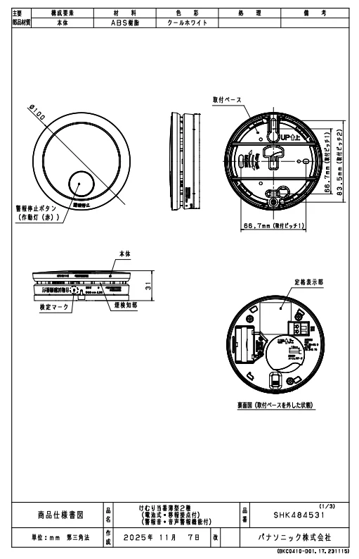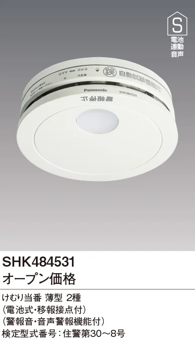 SHK484531 パナソニック けむり当番 薄型 2種 単独型(電池式・移報接点あり)(警報音・音声警報機能)