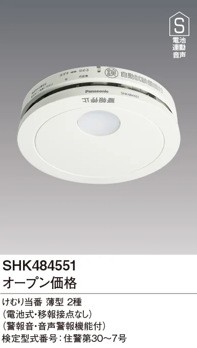 SHK484551 パナソニック 煙当番 薄型 2種 単独型(電池式・移報接点なし)(警報音・音声警報機能)