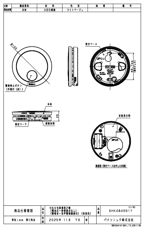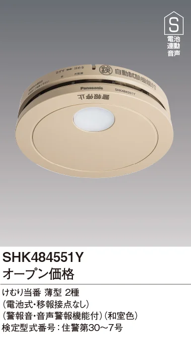 SHK484551Y 和室色 パナソニック けむり当番 薄型 2種 単独型(電池式・移報接点なし)(警報音・音声警報機能)