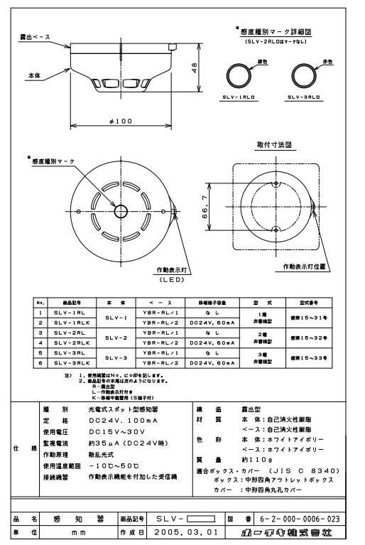 SLV-23RL ホーチキ 光電式スポット型感知器 煙感知器 露出型 ...