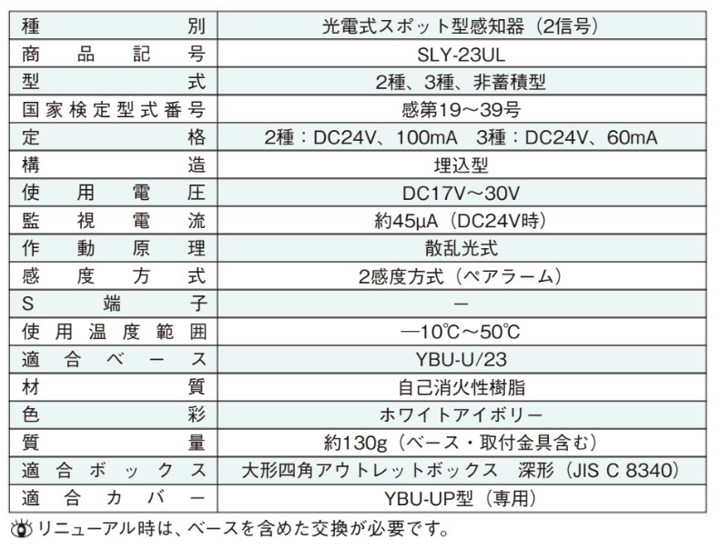 SLY-23L ホーチキ 光電式スポット型煙感知器 2信号 プチセンサタイプ ペアラーム(本体のみ)