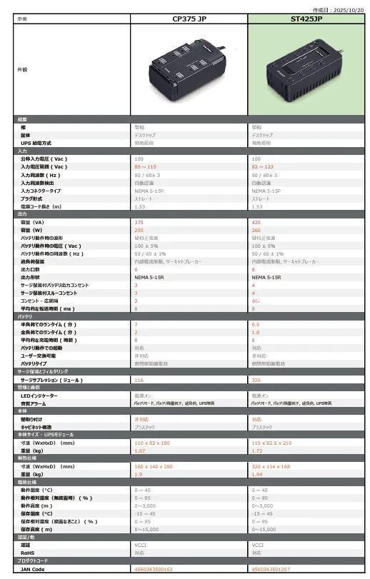 - 備考: ※CP375 JP後継品