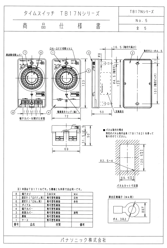 TB171N パナソニック タイムスイッチ 交流モーター式 AC100...